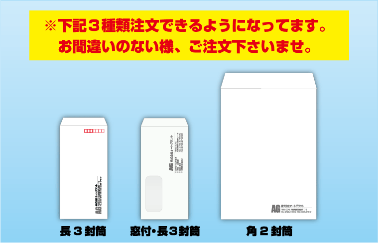 (例)長3封筒は選択したとおりで、角2封筒は「〜在中」は入れない。 ・・・など