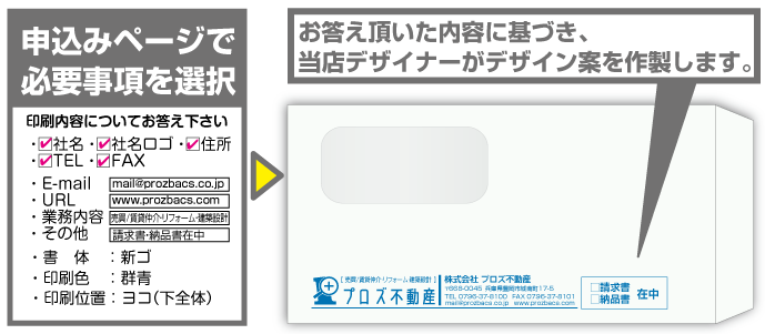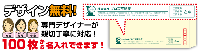■当店の封筒は、デザイン無料で100枚から名入れができます。