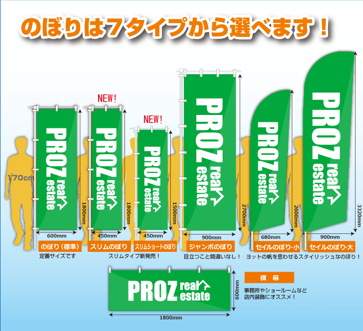 ※オリジナルのぼり・オリジナル横幕は、 デザイン料が最大5,000円掛かります。