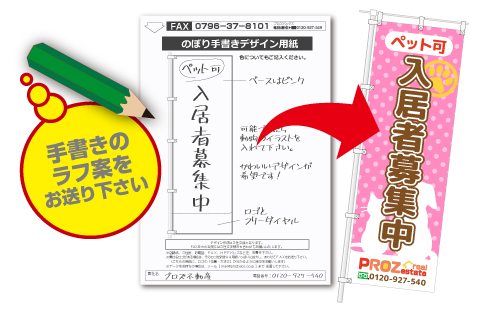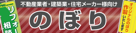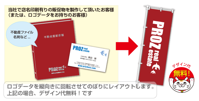 ※ロゴドン!のぼり/横幕は、不動産ファイルなどを製作時に使用したロゴデータを縦向きに回転させた場合のみデザイン無料適応となります。