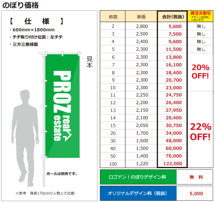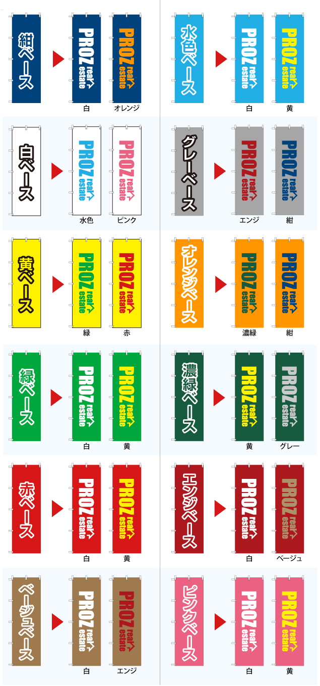 ※ロゴドン!のぼり/横幕は、不動産ファイルなどを製作時に使用したロゴデータを縦向きに回転させた場合のみデザイン無料適応となります。
