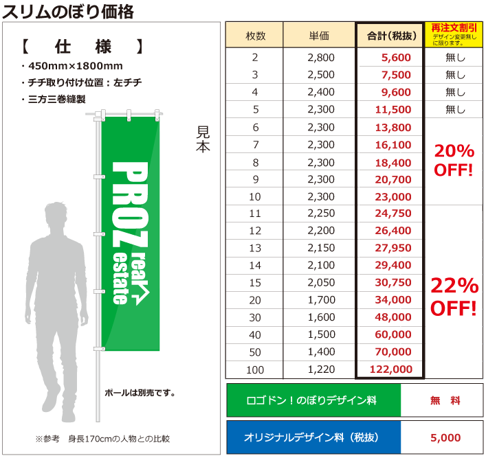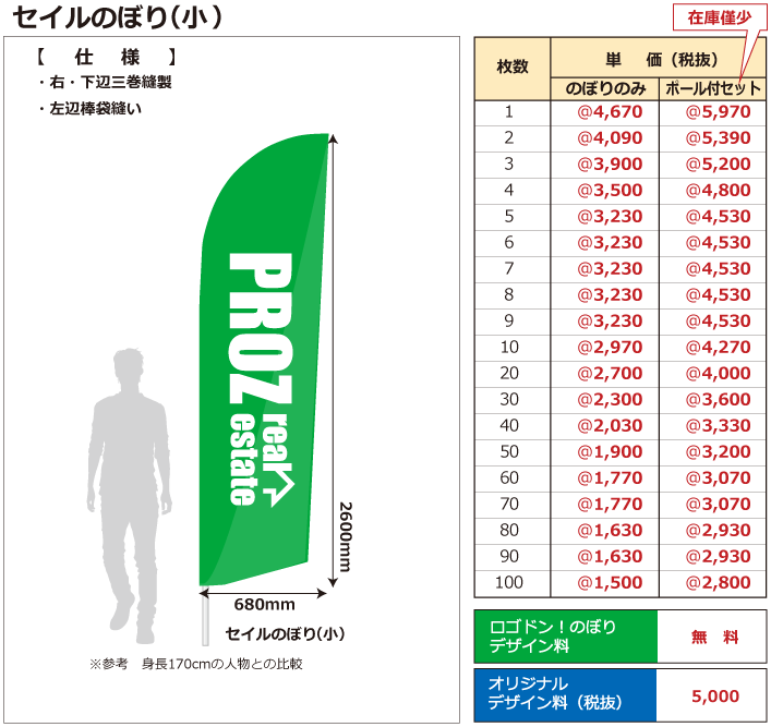 オリジナルデザイン ※オリジナルのぼり・オリジナル横幕は、 デザイン料が5,000円掛かります。