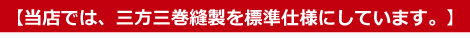 当店では風によるほつれ防止の為、三方を三巻で縫いそれを標準仕様にしております。