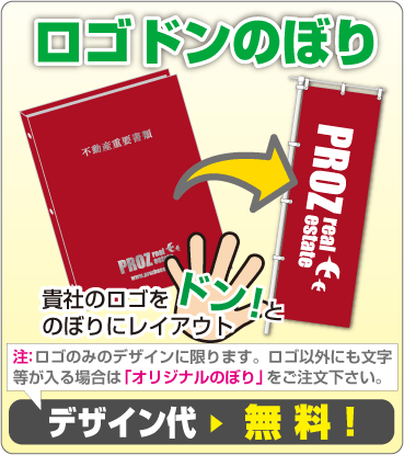 ※ロゴのみのデザインに限ります。ロゴ以外にも文字等が入る場合は「オリジナルのぼり」をご注文下さい。