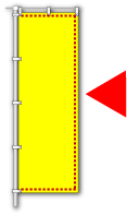 スリムショートのぼり450mm×1500mm、チチ取付位置は左側、三方三巻縫製